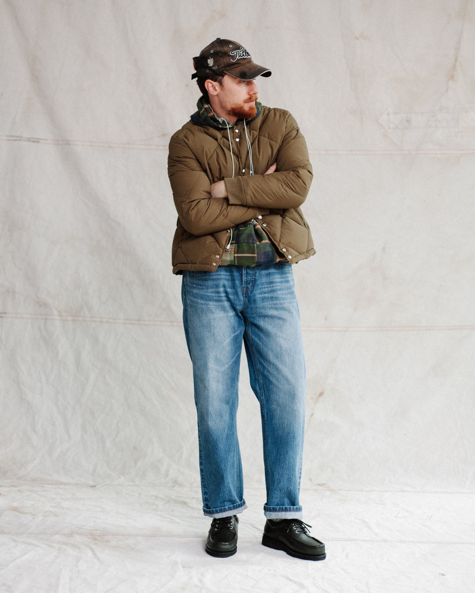 The Quilted Down Jacket t is built to sit close to the body, without the need to have lots of layers underneath. The Durable ribbed cotton cuffs and collar give the jacket comfort in the right places. A ripstop nylon outer shell is a more modern material take on outdoor workwear.
